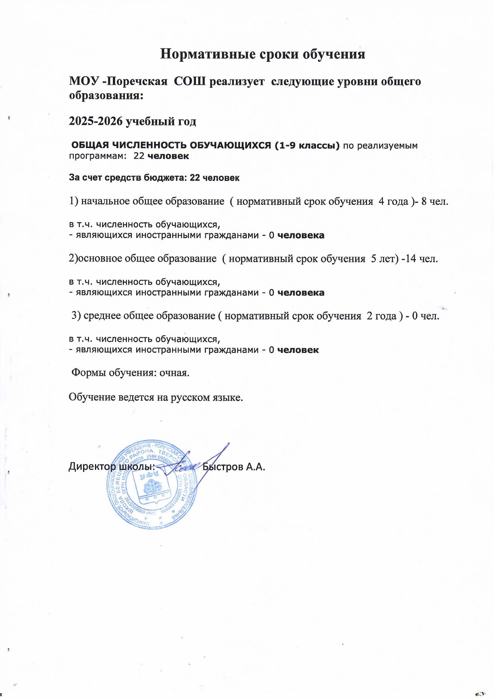 | Язык, на котором осуществляется образование | Русский |